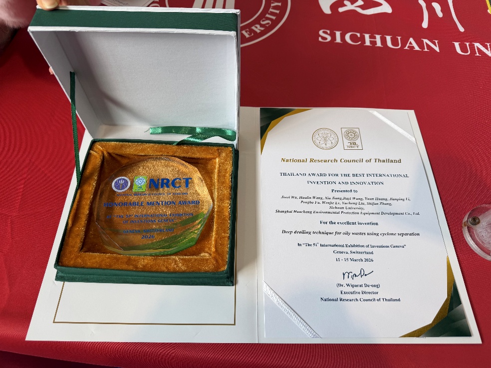近日,第51届瑞士日内瓦国际发明展在瑞士日内瓦落下帷幕。四川大学碳中和未来技术学院吴霁薇副研究员团队携发明项目 “Deep Deoiling Technique for Oily Wastes Using Cyclone Separation”参展,凭借突出的原创性、先进性与应用前景,勇夺最佳“国际发明奖与创新奖”,充分展现了我院在绿色低碳技术创新的强劲实力。