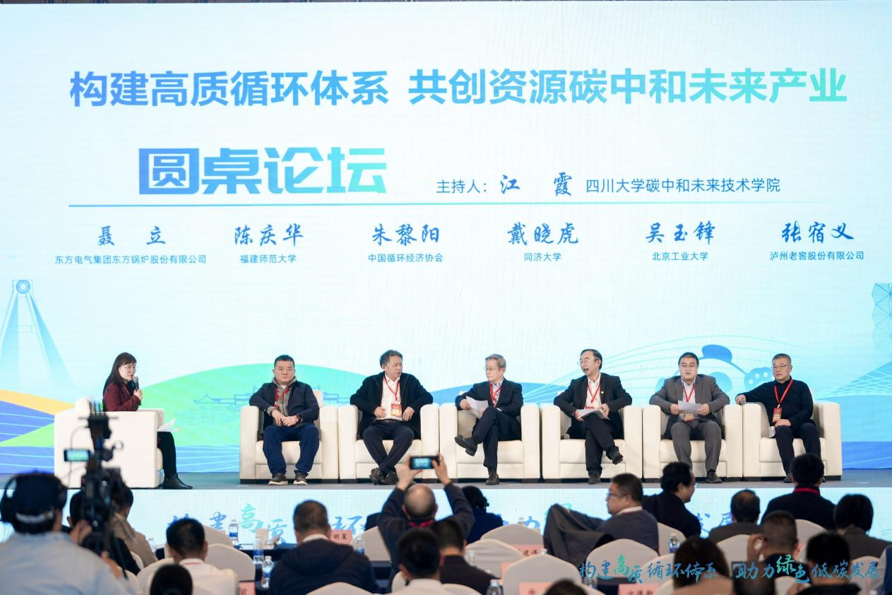 会议同期举行主题为“构建高质循环体系,共创资源碳中和未来产业”圆桌论坛。在四川大学碳中和未来技术学院常务副院长江霞教授的主持下,来自东方电气、泸州老窖等在川龙头企业的嘉宾,同高校学者专家一起深入探讨西部资源碳中和未来产业成果及技术路径。