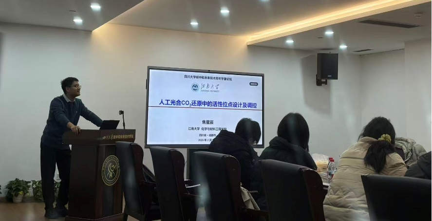 为贯彻落实碳中和国家重大战略,促进碳中和领域科学研究和人才培养,2026年2月2日,“四川大学碳中和未来技术青年学者论坛”(第六十二期)在江安校区行政楼517室顺利举行。本次论坛邀请了江南大学焦星辰教授作报告,我院苏慧副研究员主持。