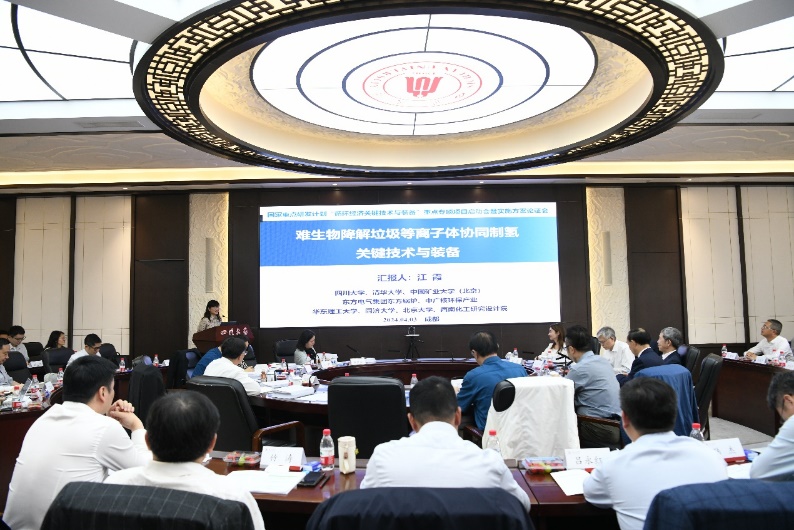 4月3日,四川大学碳中和未来技术学院江霞教授主持的国家重点研发计划“难生物降解垃圾等离子体协同制氢关键技术与装备”(2023YFC3905500)项目启动会暨实施方案论证会在四川大学顺利召开。实施方案论证专家组由广东省科学技术协会陈勇院士、清华大学贺克斌院士、东华大学孙以泽院士、华东理工大学汪华林院士、同济大学戴晓虎教授、北京工业大学吴玉锋教授、东方电气集团总经理张彦军、成都环境集团技术中心首席专家王莹组成。四川省科学技术厅副厅长/一级巡视员田云辉、中国21世纪议程管理中心项目主管刘家琰、成都市生态环境局副局长文雁、四川大学科研院院长吴尧出席会议并致辞。启动会由四川大学科研院重大项目与基地管理部副部长陈显春主持。